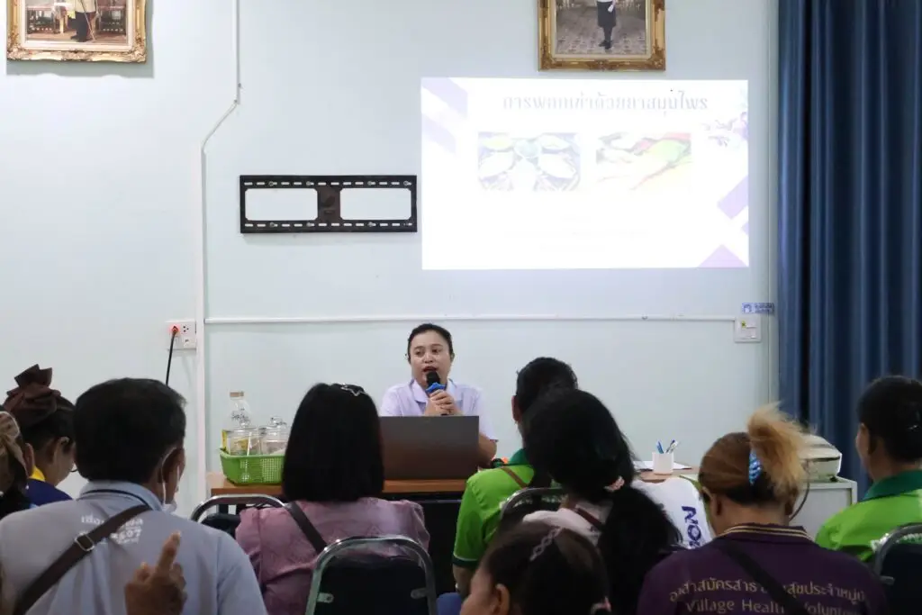 วันที่ 4 สิงหาคม 2568 เวลา 08.30 น. นายแพทย์ตฤณพงศ์ ธีรพงศ์ธนสุข ผู้อำนวยการโรงพยาบาลโพนนาแก้ว มอบหมายให้ กลุ่มงานการแพทย์แผนไทยและการแพทย์ทางเลือก โรงพยาบาลโพนนาแก้ว จัดทำโครงการโครงการให้ความรู้และพอกเข่าด้วยสมุนไพรบรรเทาปวดในผู้สูงอายุ ได้รับการส่งเสริมสุขภาพด้วยศาสตร์แพทย์แผนไทย โรงพยาบาลโพนนาแก้ว ประจำปีงบประมาณ 2568 เพื่อส่งเสริมการใช้ประโยชน์จากพืชสมุนไพรตามปรัชญาเศรษฐกิจพอเพียงในชุมชนและสามารถนำสมุนไพรมาประยุกต์ใช้กับภูมิปัญญาท้องถิ่นและประโยชน์ในการดูแลสุขภาพ โดยมีอสม. ในพื้นที่ 4 หมู่บ้าน ในเขตรับผิดชอบของกลุ่มงานบริการด้านปฐมภูมิและองค์รวม โรงพยาบาลโพนนาแก้ว เข้าร่วมโครงการ ณ ห้องประชุมภูริทัตตะ โรงพยาบาลโพนนาแก้ว