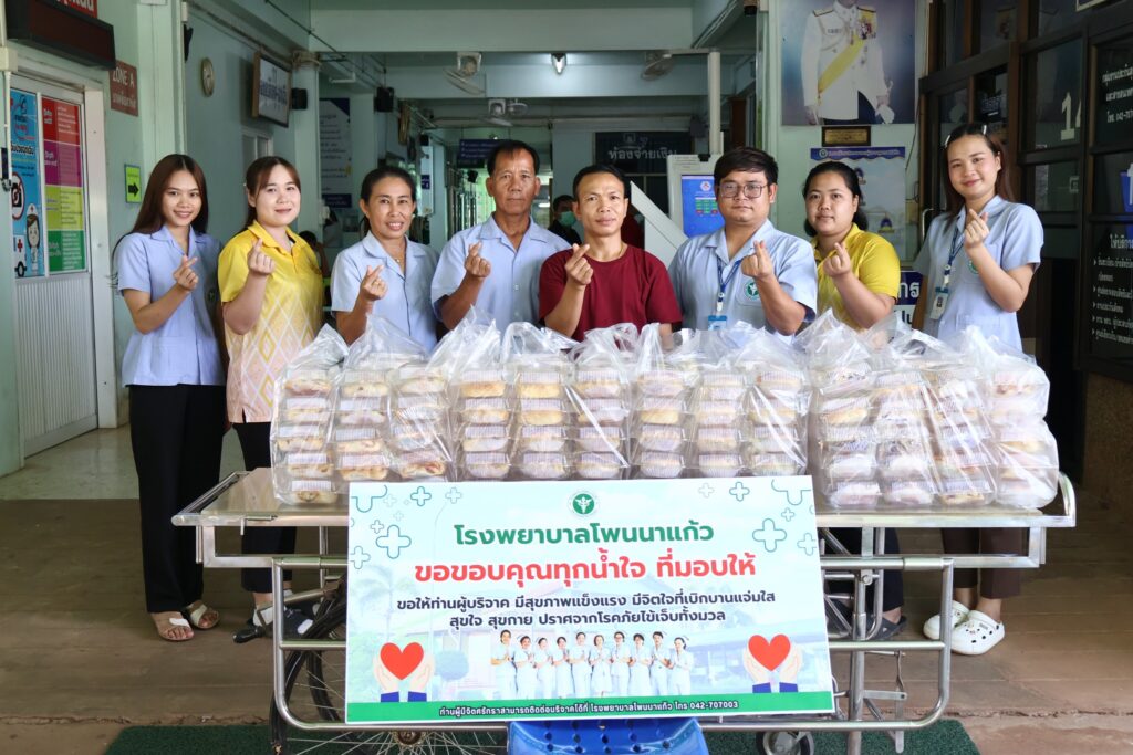 โรงพยาบาลโพนนาแก้ว ขอขอบพระคุณ มูลนิธิพอวดี และผู้ใหญ่ใจดี มอบขนมปังสอดไส้ จำนวน 190 กล่อง ให้กับเจ้าหน้าที่โรงพยาบาลโพนนาแก้ว