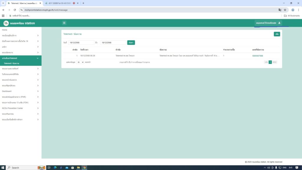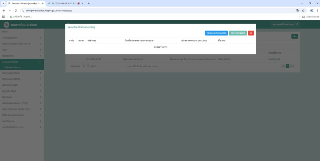 ขั้นตอนที่ 2 ไปที่เมนู เเจ้งเตือน/TeleMed และ กดปุ่มเพิ่มตรงด้านขวา
