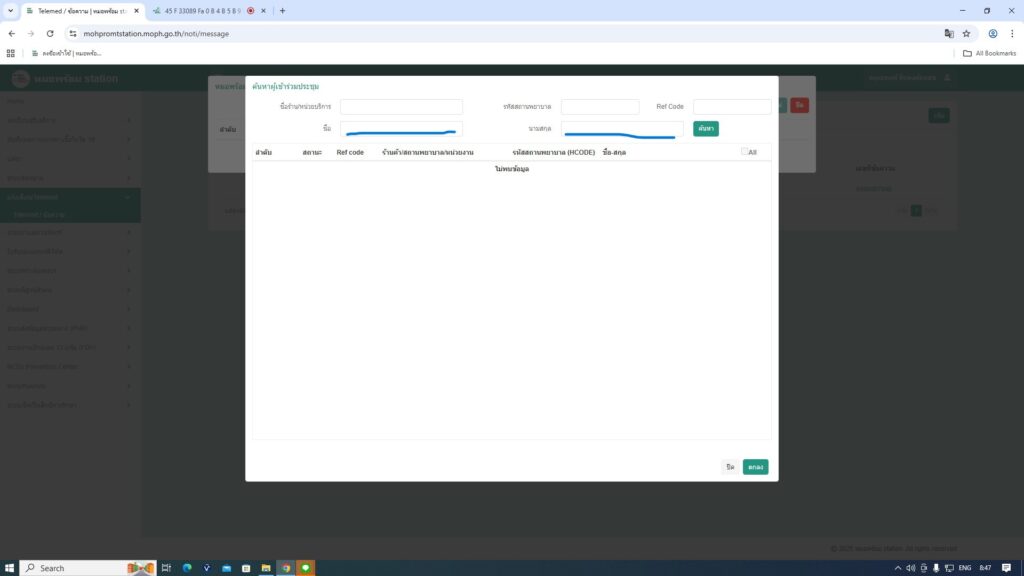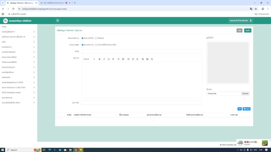 ขั้นตอนที่ 3 กรอกรายละเอียดบันทึกข้อมูลที่ รพ.ส่งไปกลุ่มไลน์ ติ๊ก Telemed แล้วบันทึก